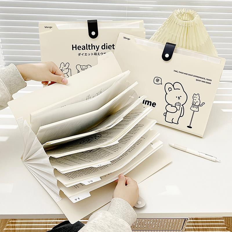 高中生a4手提式可爱风琴文件夹试卷收纳袋子学科文件袋小学生高颜值多层科目分类书夹风琴包插页透明整理神器