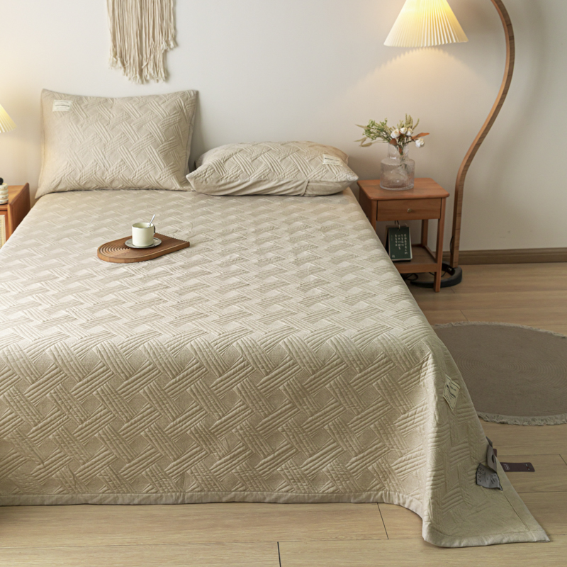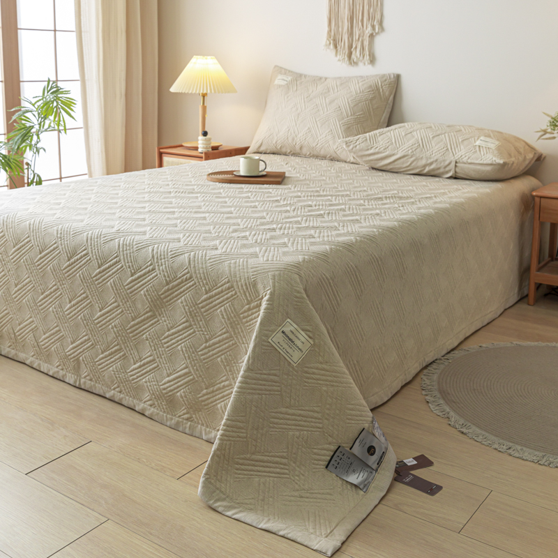 双面可用全棉牛奶绒夹棉床盖单件加厚防滑榻榻米炕盖床单三件套
