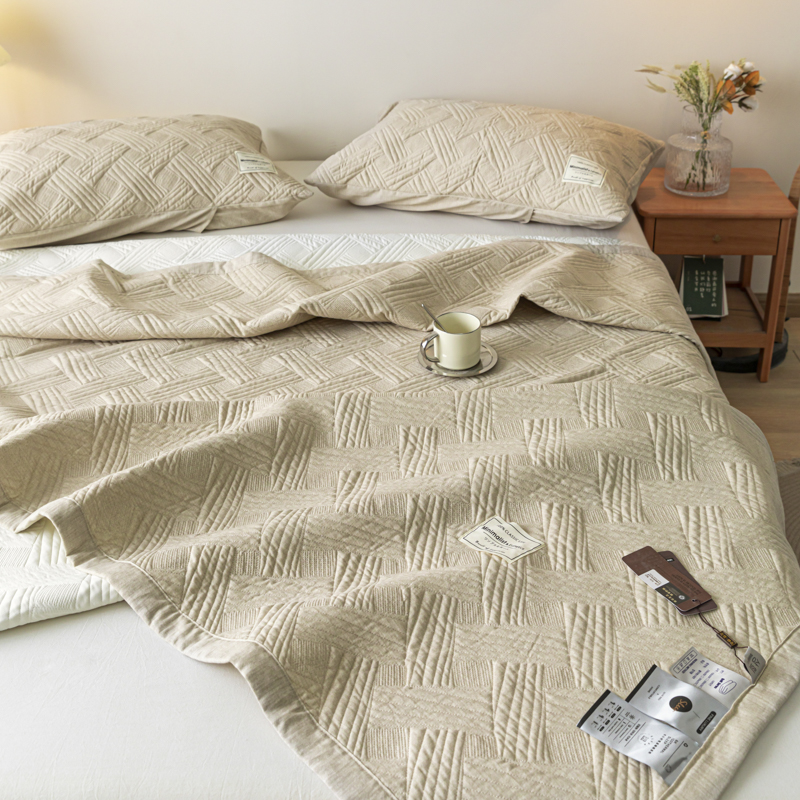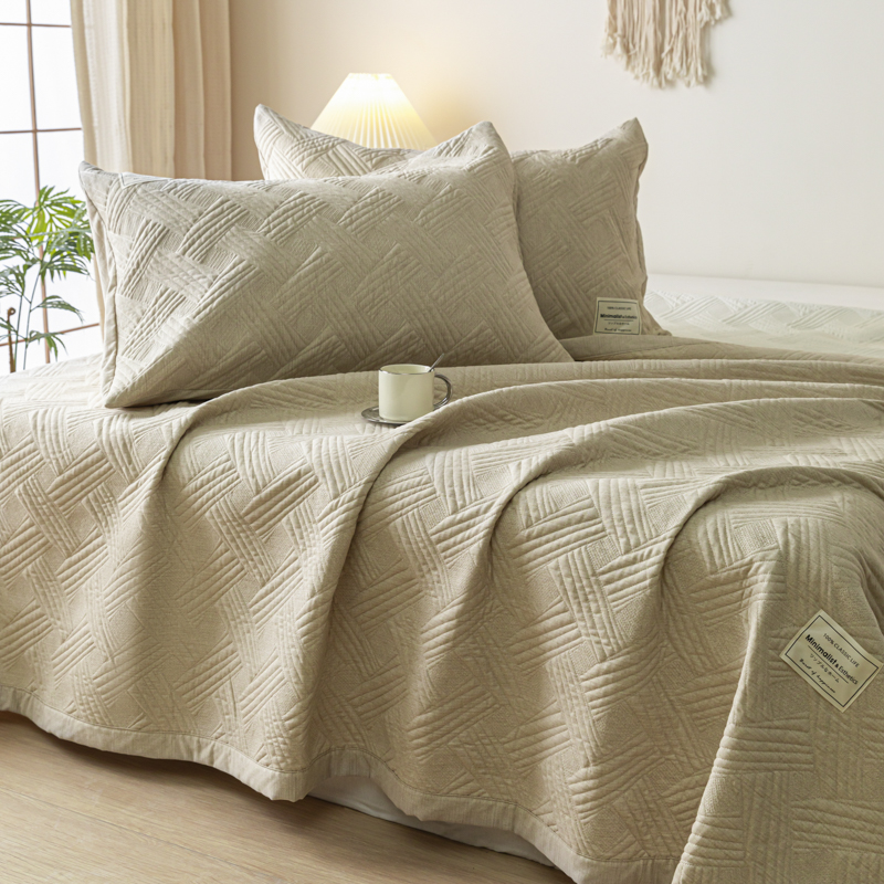 A类全棉床盖三件套纯棉酒店风榻榻米绗缝被轻奢高级感不跑床单件