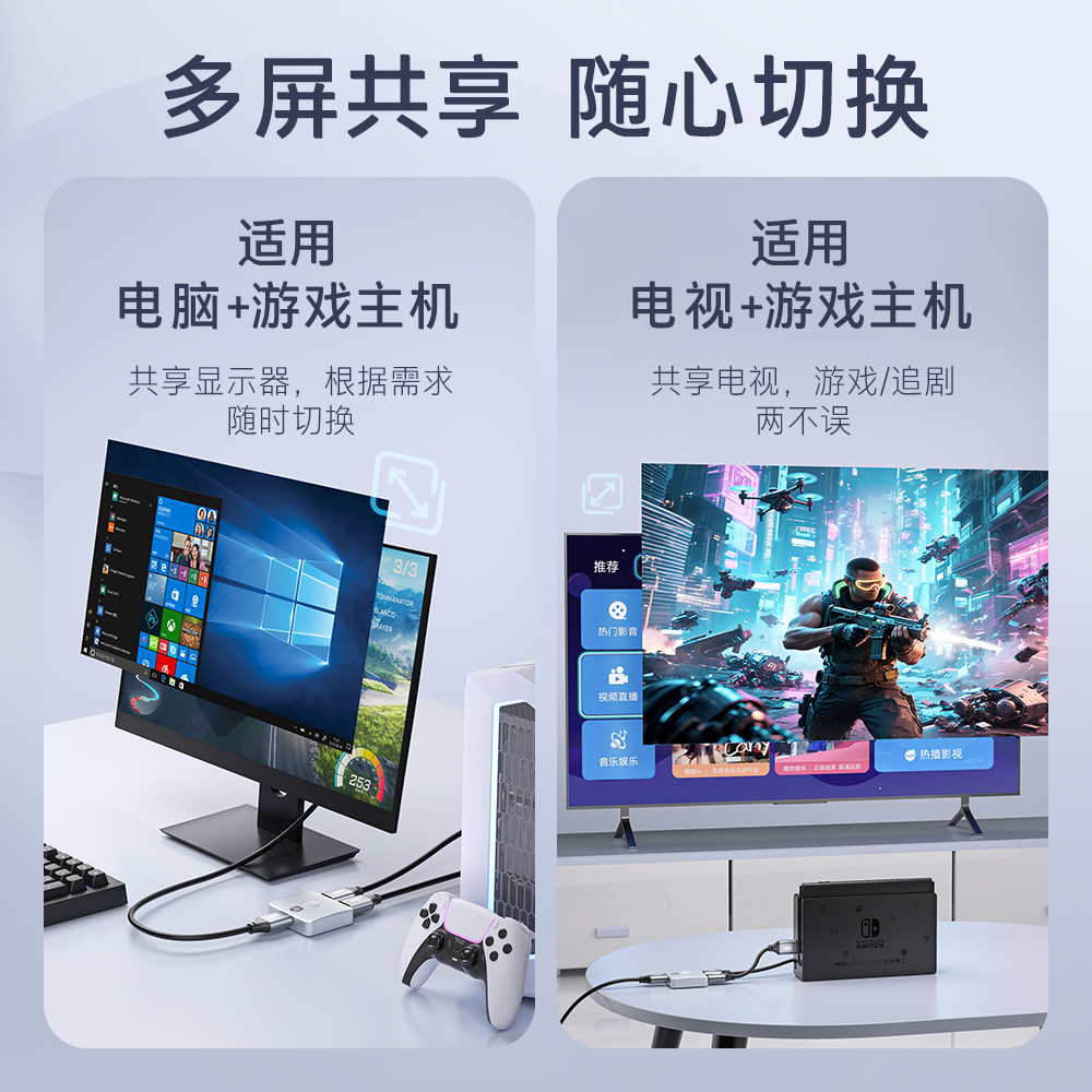 惠普HDMI分屏器一分二分配器二进一出4K超高清线切换器电脑电视信号源多屏幕视频双向转换一拖二画面拓展器