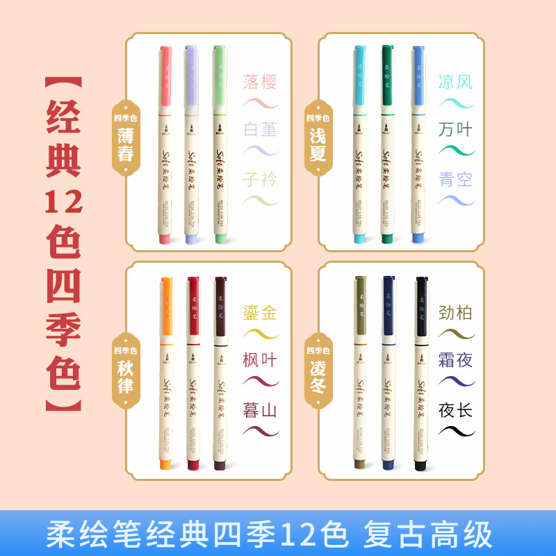 点石软头新国色柔绘笔彩色秀丽笔马克笔记号笔手帐brush枫叶红勾线笔手账专用笔荧光标记笔钢笔式书法笔小楷