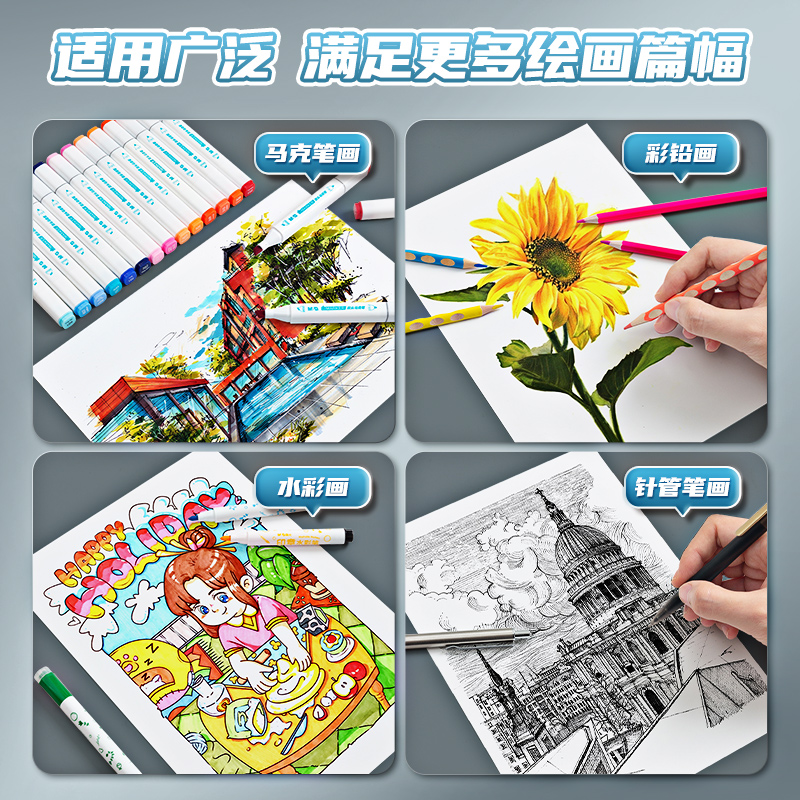晨光文具 马克纸 素描速写A4水彩手绘画册马克笔绘画8k白纸学生用初学者儿童16K美术生专用涂鸦画画铅手抄报