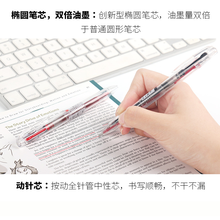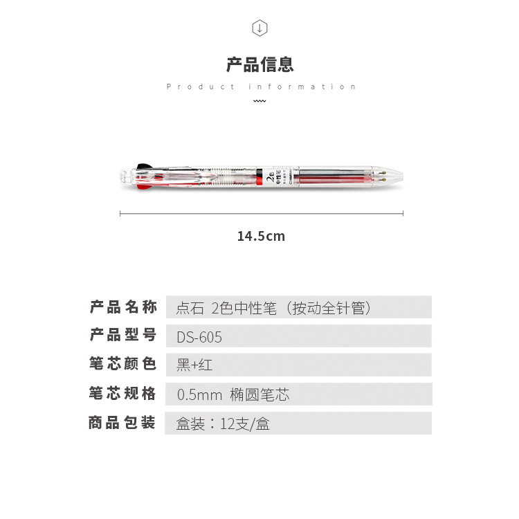 点石DS605双色中性笔黑红2色自如切换按动全针管0.5mm环保中性笔