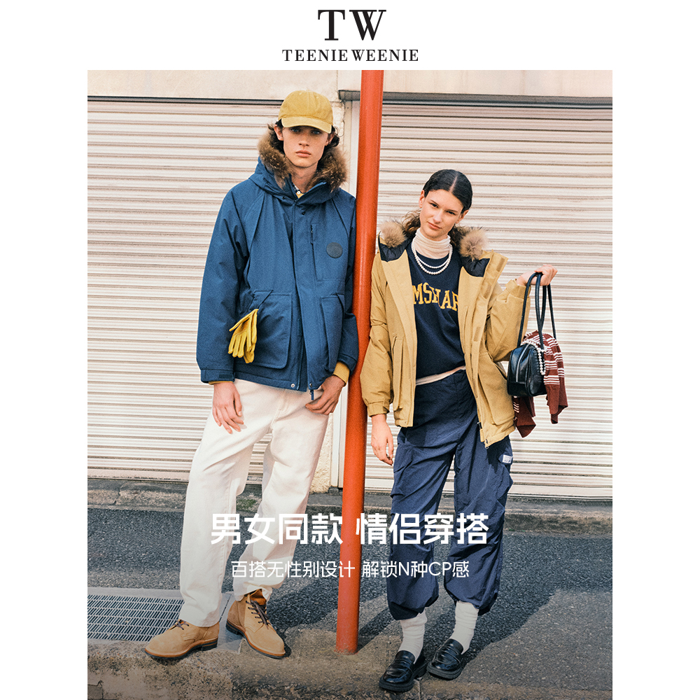 TeenieWeenie小熊男装户外三防90绒保暖宽松毛领派克服冬季羽绒服
