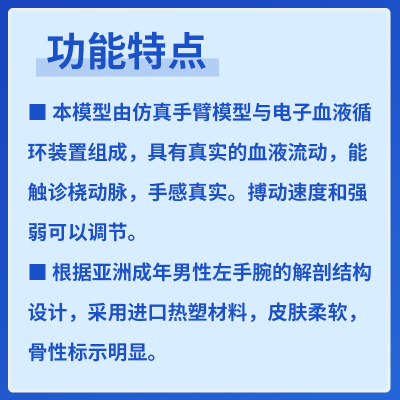 动脉血气训练模型电血液循环真血液触桡动脉搏动可调亚洲男腕热塑皮软骨标穿刺落空回血针眼小可换皮动脉