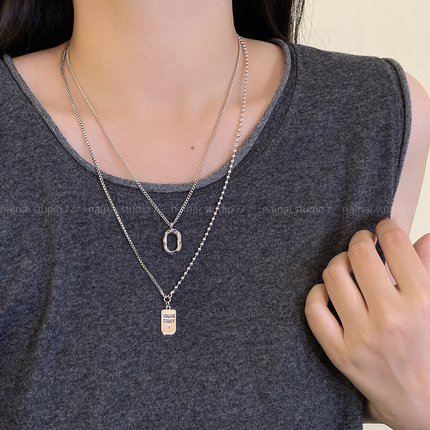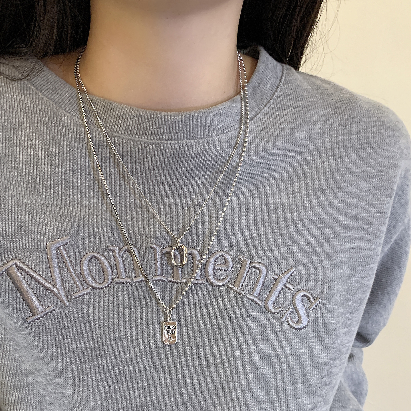 韩国方牌双层项链~几何吊坠高级感小众设计锁骨链毛衣卫衣链配饰A