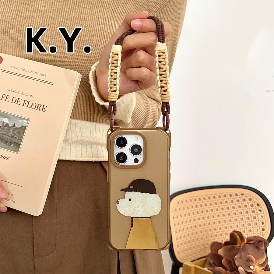 简约帽子小狗适用苹果16PROMAX华为mate60PRO手机壳15promax挂绳斜挎可背PURA70四角开孔小米15ULTRA防摔硬壳