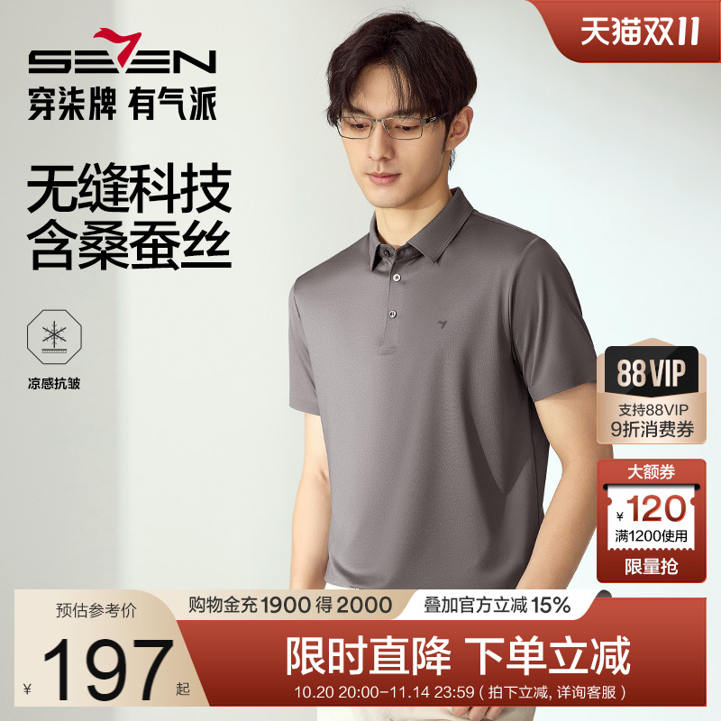 【无缝工艺】柒牌短袖polo衫男2025夏季凉感翻领商务冰丝爸爸T恤