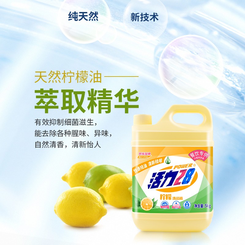 活力28洗洁精柠檬5kg瓶装快速去油清新去味家用实惠装官方正品