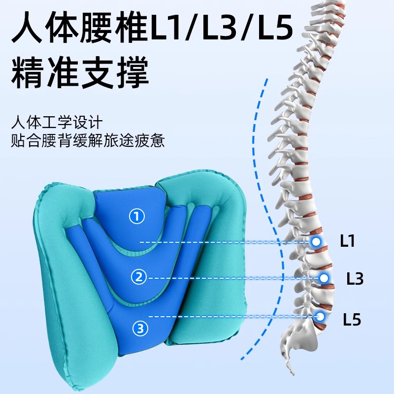 按压式充气腰垫长途坐飞机旅行腰枕护腰靠垫腰托睡觉神器高铁便携