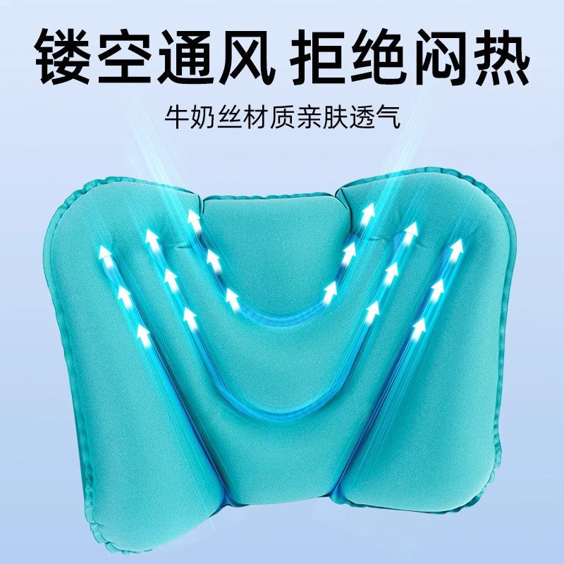 按压充气枕头飞机高铁长途坐车护腰靠垫户外旅行露营折叠便携枕头