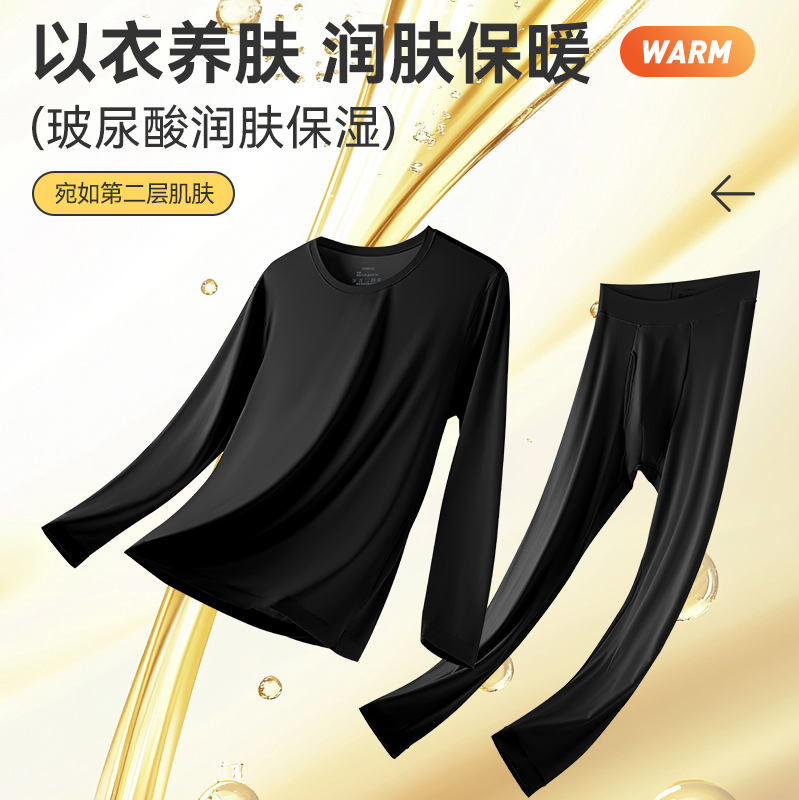 浪莎保暖内衣男款玻尿酸肌底衣无痕薄款秋衣秋裤套装秋冬季打底衣