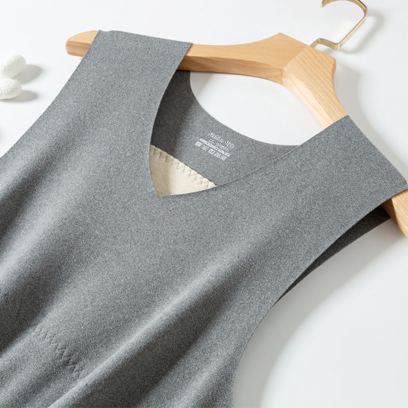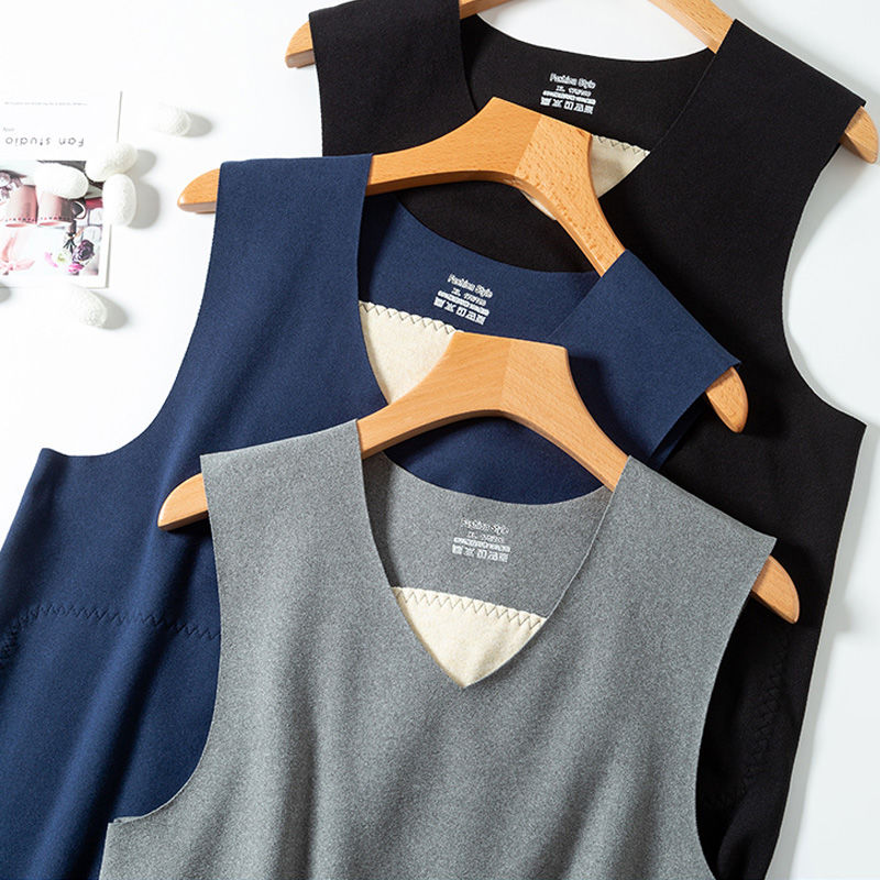 德绒男士保暖背心秋冬季加绒加厚无痕贴片磨毛坎肩马甲打底衫羊毛