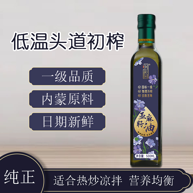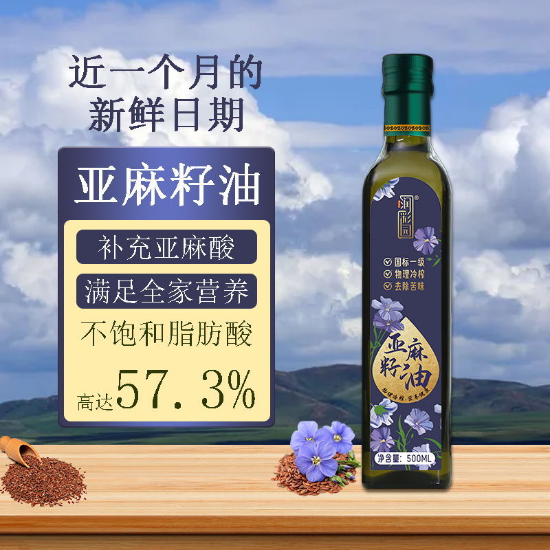 冷榨纯亚麻籽油小瓶500ML家用热炒凉拌食用油一级压榨纯亚麻籽油