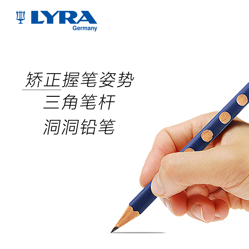 德国LYRA艺雅洞洞铅笔HB矫正握姿小学生三角形2B三棱2H正品儿童幼儿园用纠正初学者写字洞洞笔原装