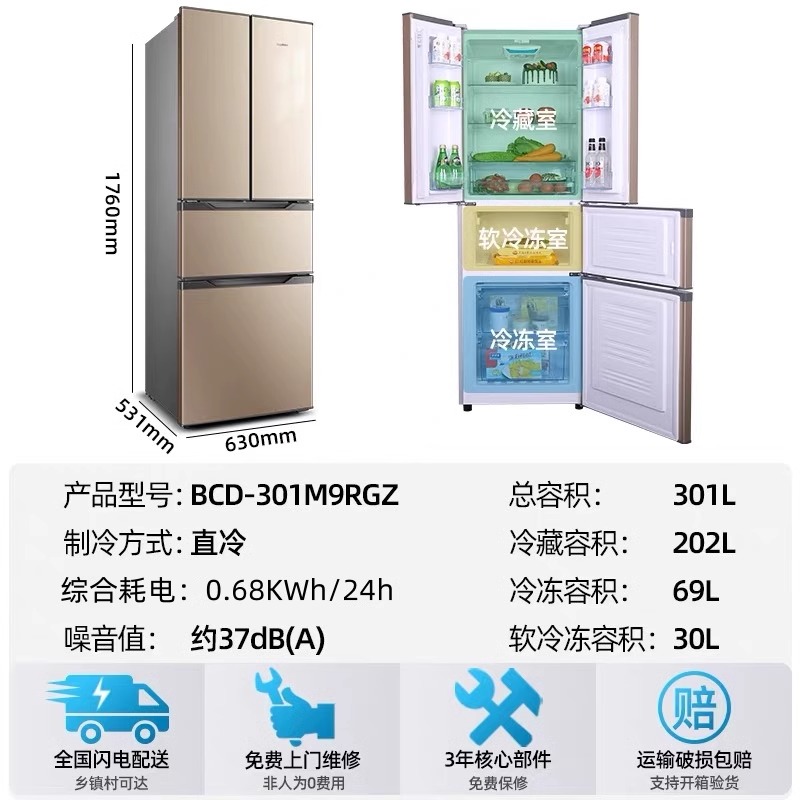 美的M60小机皇520超薄零嵌入式冰箱家用双系统法式多门四门双开