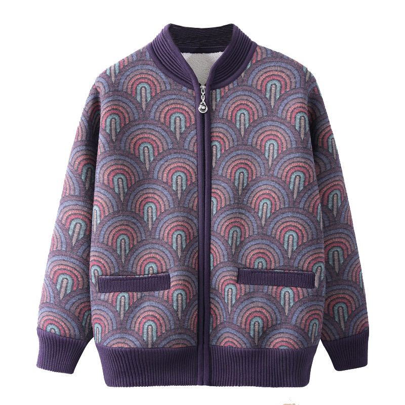 中老年人奶奶春秋外套时尚新款秋冬季加绒加厚上衣老人开衫女衣服