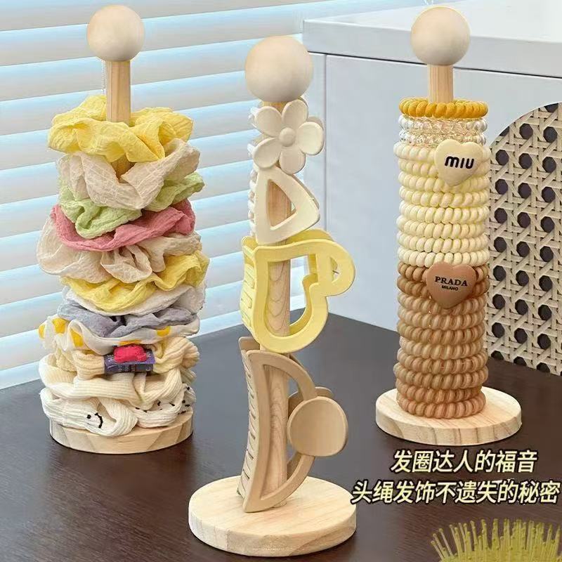 大肠发圈收纳神器儿童头绳橡皮筋鲨鱼夹头花发饰置物架原木展示架