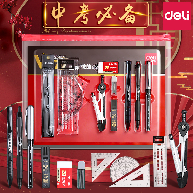 得力中考专用文具套装高考考试连中三元金榜题名2b铅笔涂卡笔带垫板公务员考试用品初升高升学考15件文具套装