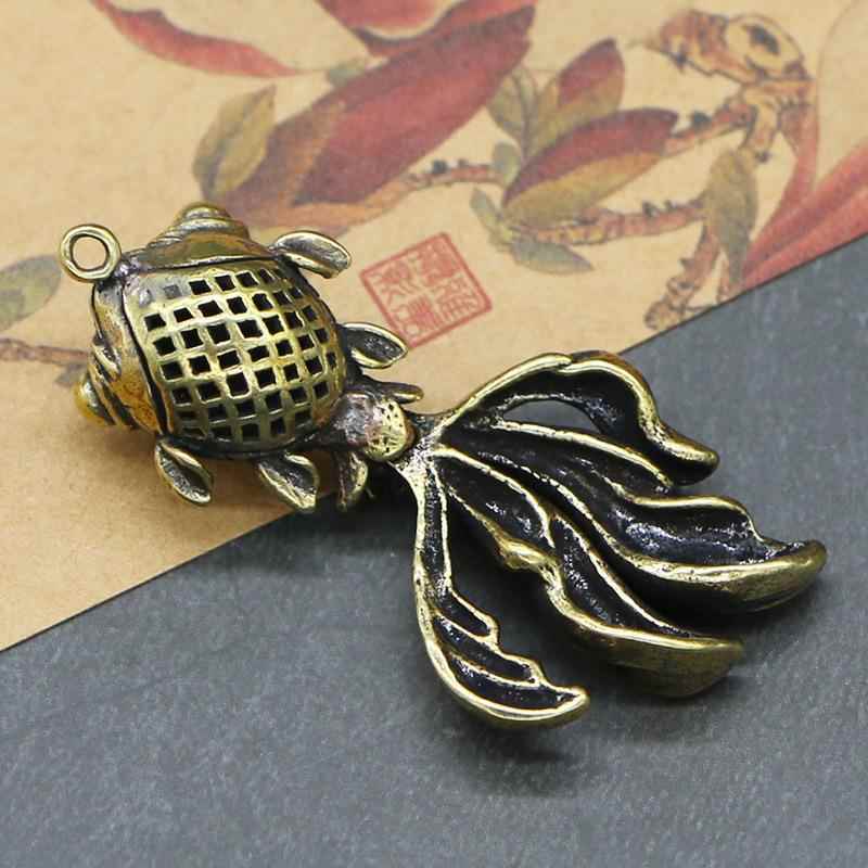 黄铜金鱼钥匙挂件 纯铜锦鲤汽车钥匙扣配件 福气做旧工艺品