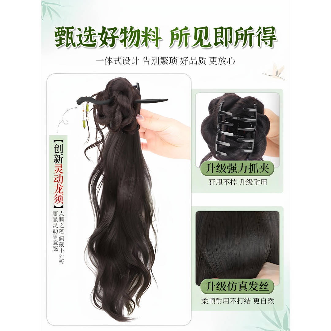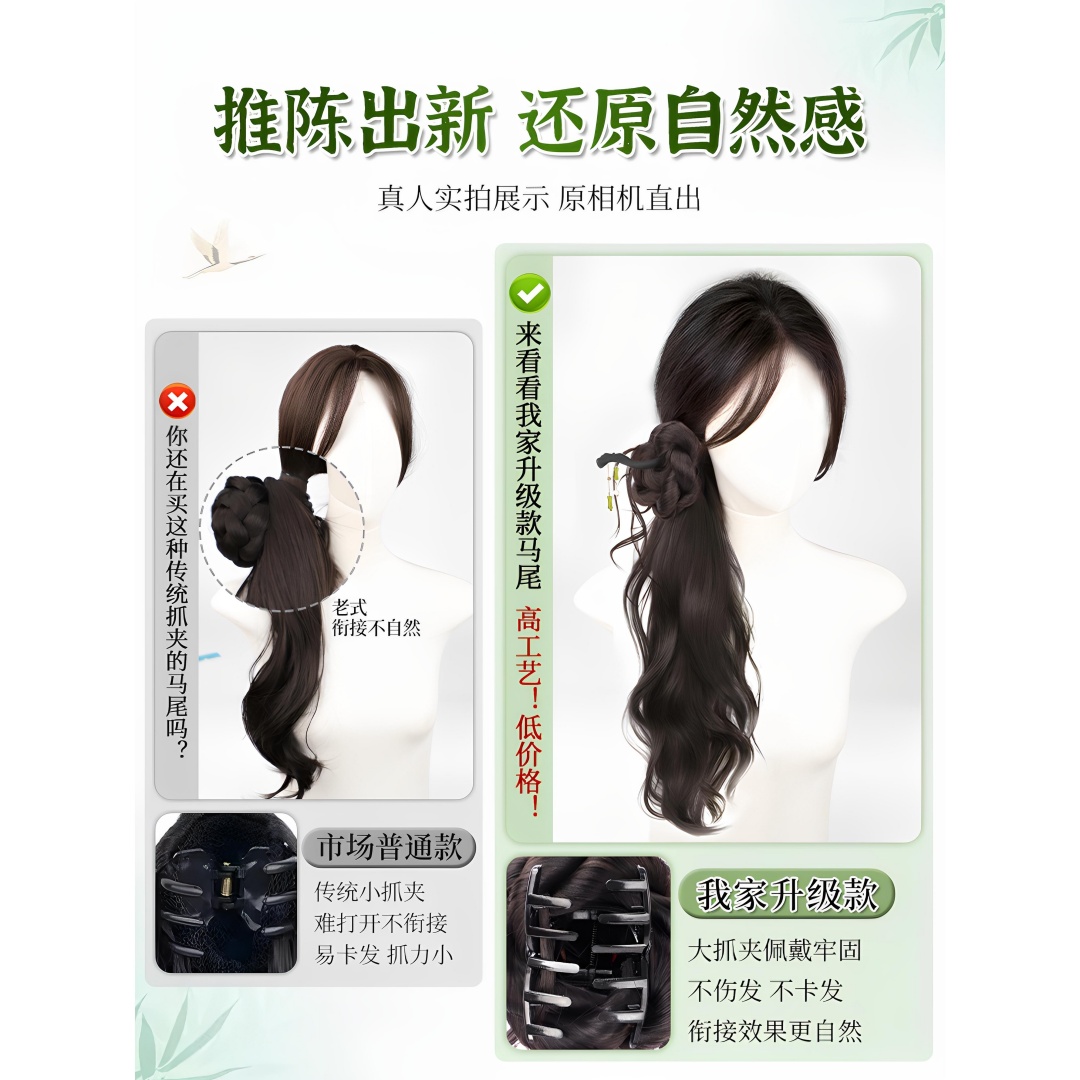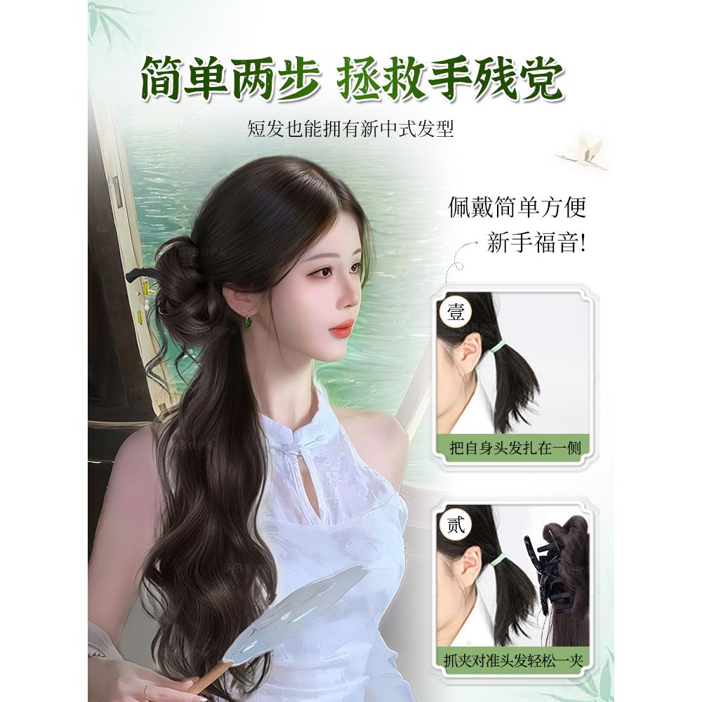 假发辫假发抓夹马尾女新中式温婉盘发旗袍轻国风仿真辫子假发马尾