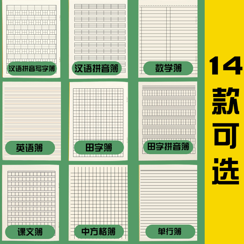 幼儿园小学生汉语拼音本一年级牛皮作业本1-2田字格写字薄广州练习本数学拼音簿双行单行课文本大中小方格本