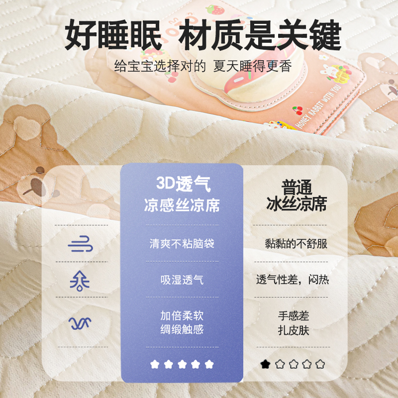 A类婴儿凉席新生宝宝冰丝席幼儿园儿童午睡透气软席子夏季床单席