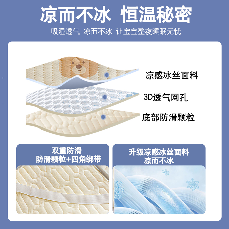 爱贝迪拉婴儿凉席可用冰丝夏季幼儿园宝宝婴儿床午睡专用儿童a类