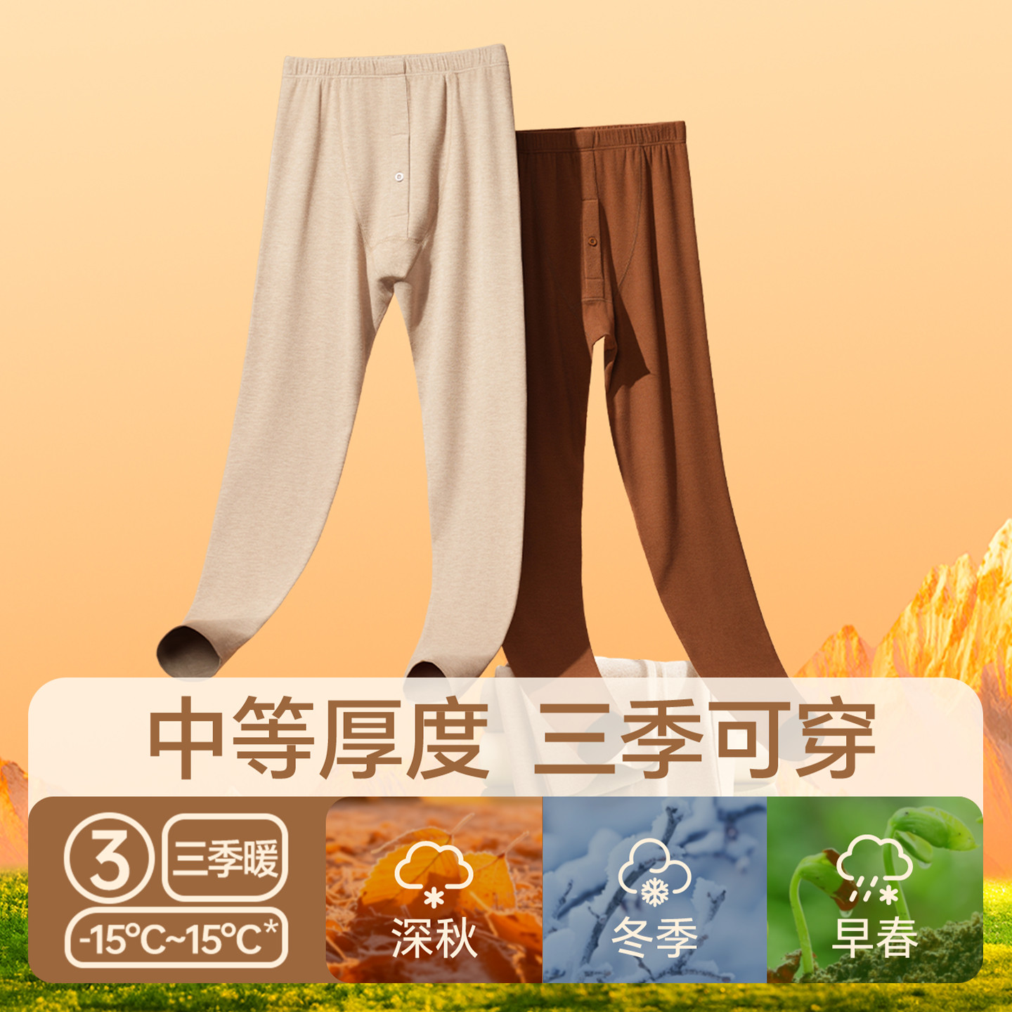 恒源祥秋裤男士纯棉薄款打底裤棉裤男款保暖裤10A抗菌全棉毛线裤