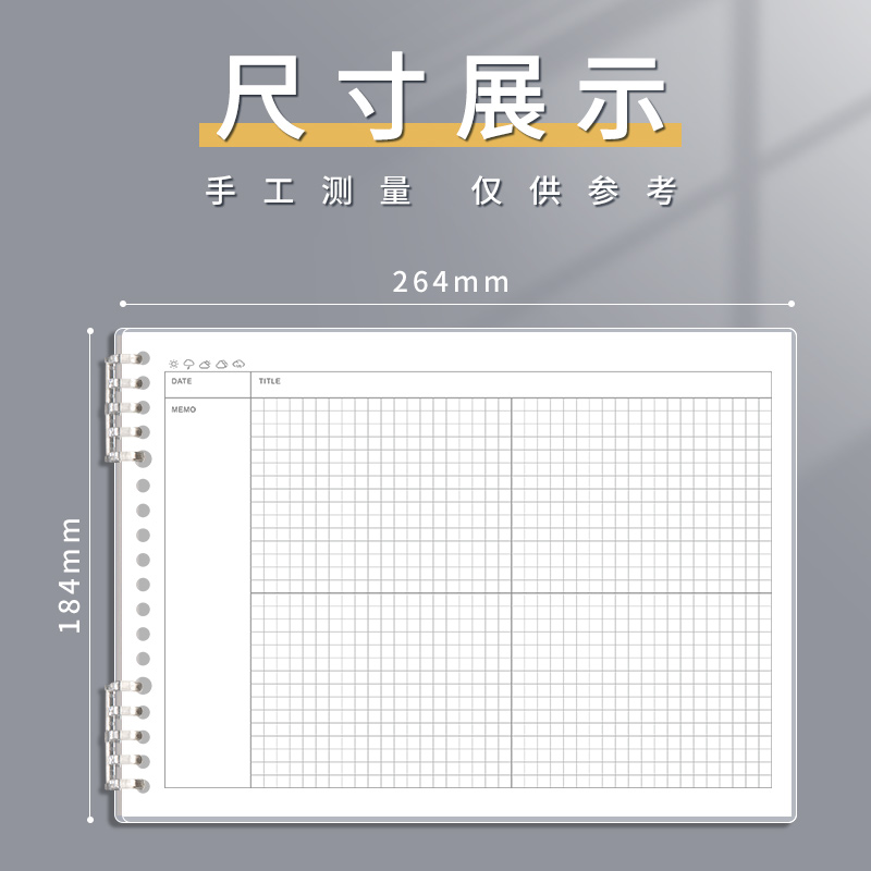 B5可拆卸思维导图笔记本本子侧翻活页本硬壳上翻手账本横版横向方格本大学生考研学习记事本横线康奈尔网格本