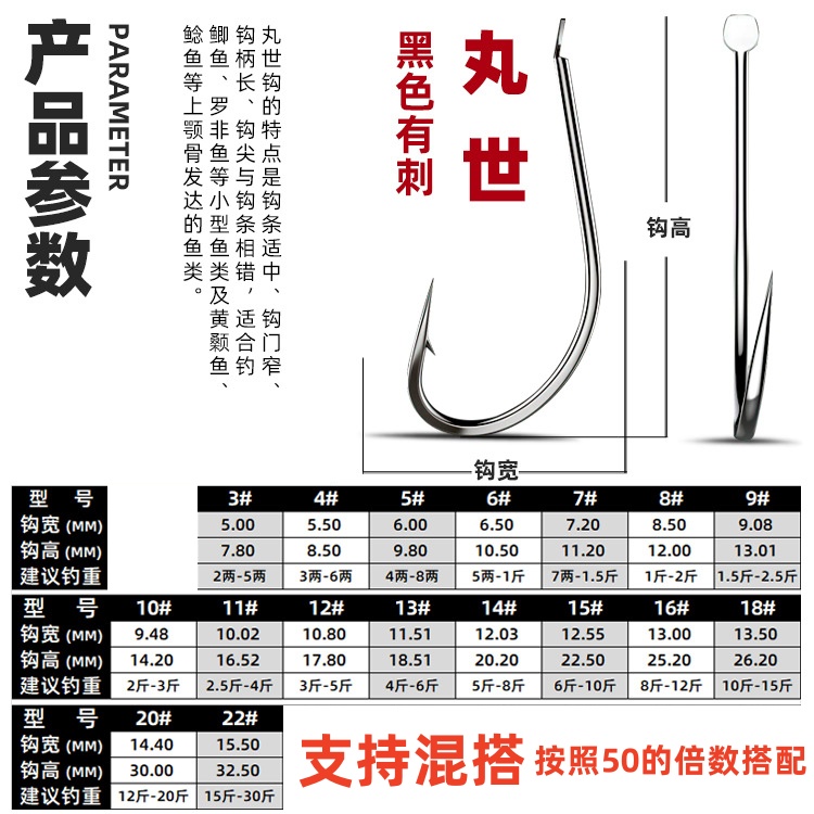 长柄丸世鱼钩散装歪嘴日本进口海钓鲫鱼鲈鱼黑鱼溪流细条18号子线