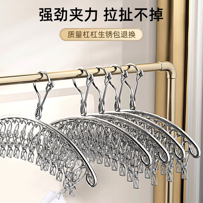 晾衣架多夹子晒袜子神器家用夹凉内衣内裤功能婴儿晾晒专用不锈钢