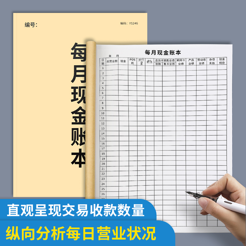每月现金记账本每日营业额记账本现金日账本明细账店铺生意流水账收入支出明细餐厅饭店超市餐饮店营业记录本