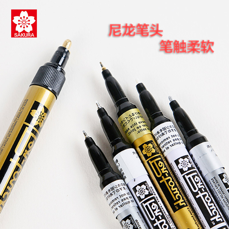 樱花金属油漆笔记号笔白色金银色补漆笔高光笔签名笔油性马克笔细