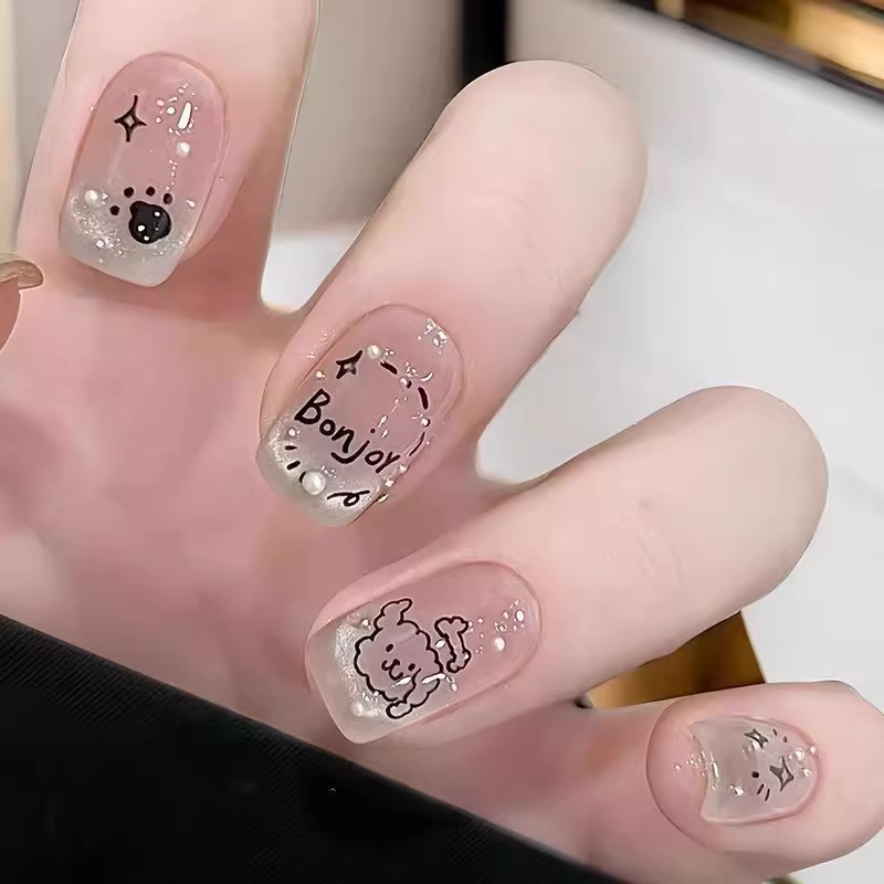 2025新款卡通kt喵儿童穿戴甲短款指甲贴3-12岁女童猫眼短甲无毒无味自粘百搭美甲贴果冻胶可拆卸小学生奖励贴