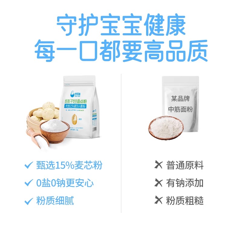 谷妈咪中筋面粉饺子宝宝包子儿童馒头专用主食无添加食盐家用辅食