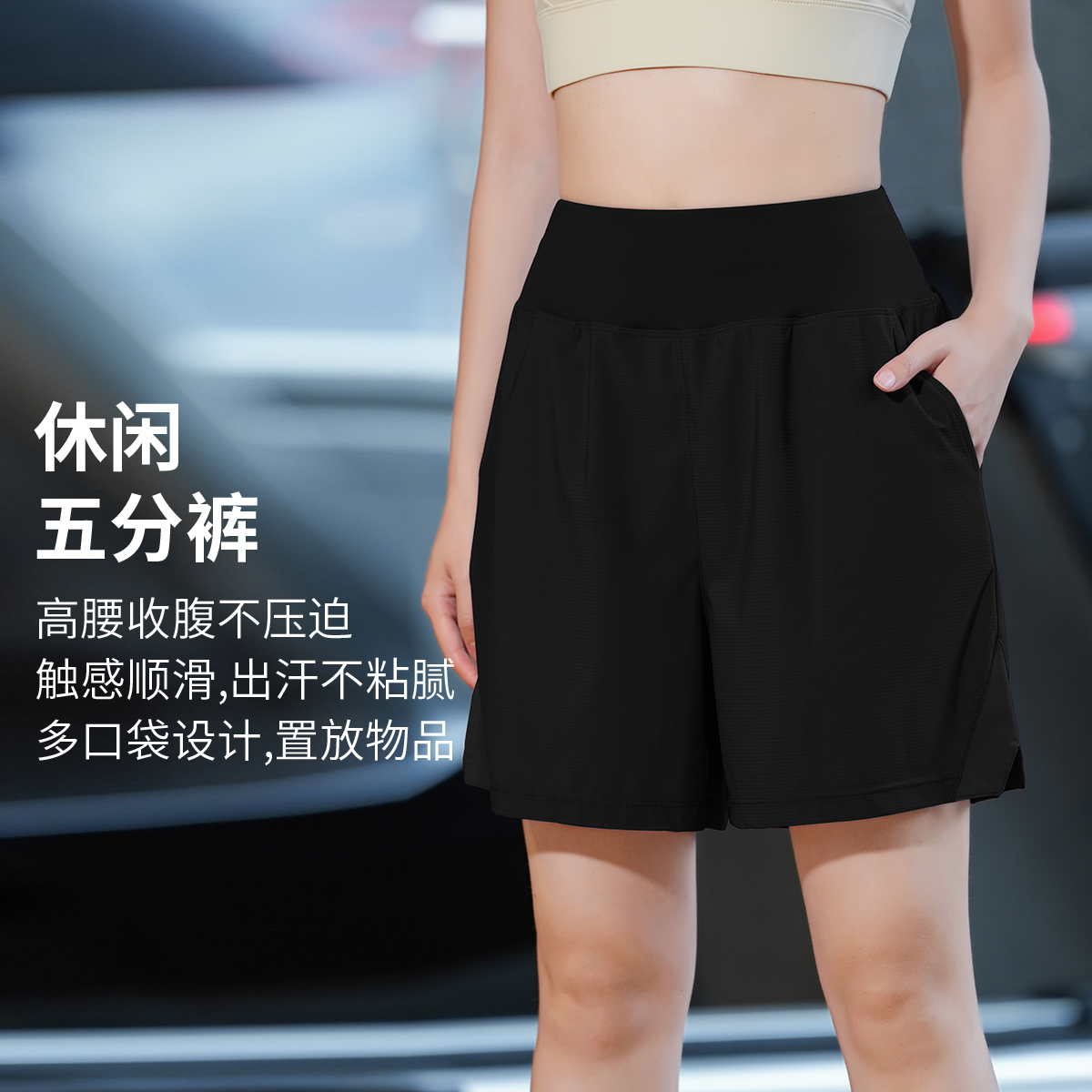 后口袋跑步运动裤女夏季新款宽松休闲瑜伽五分裤健身房训练服后腰