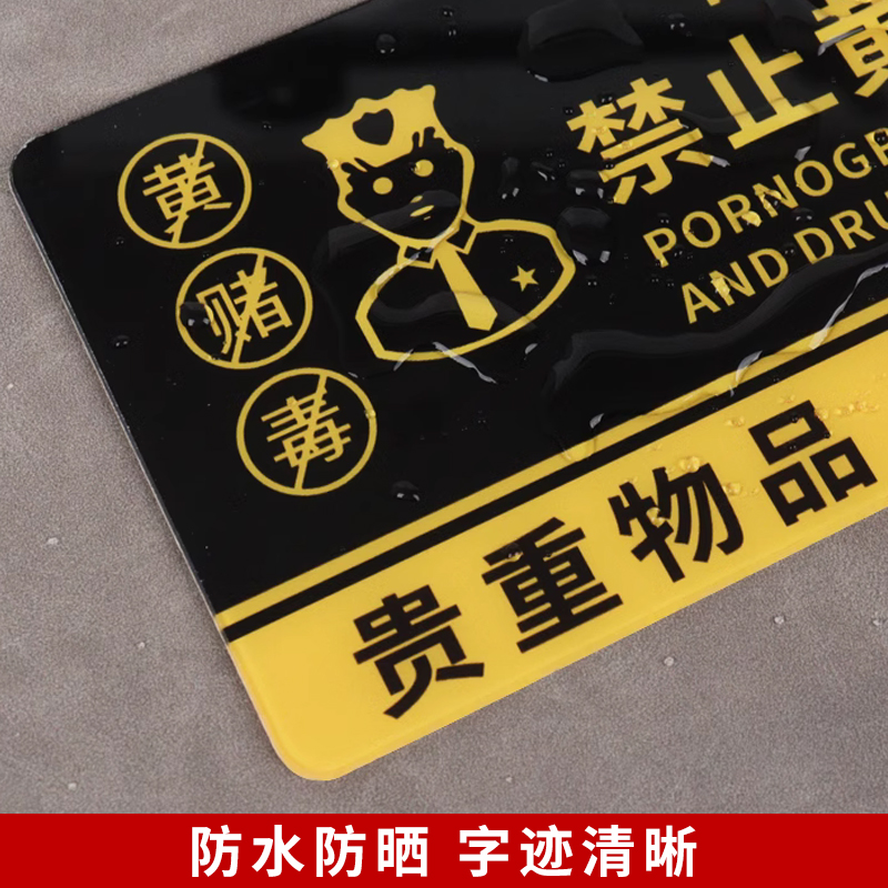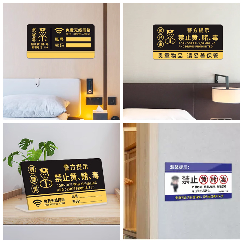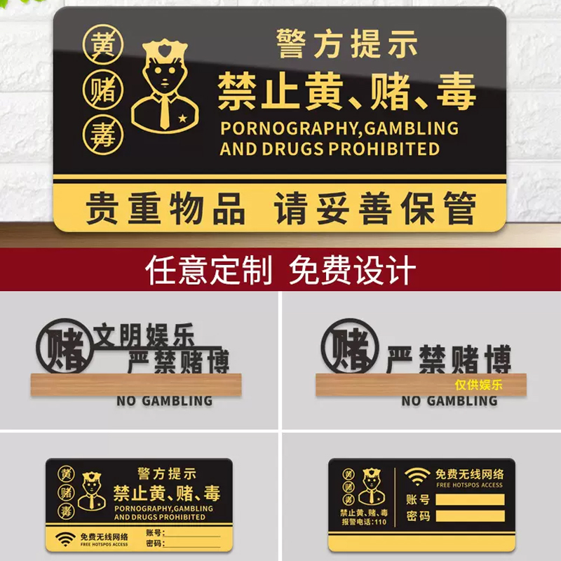 禁止黄赌毒标识牌拒绝赌博三禁警示牌亚克力酒店客房严禁卖淫赌博温馨提示贴宾馆KTV酒吧禁毒提醒警告贴