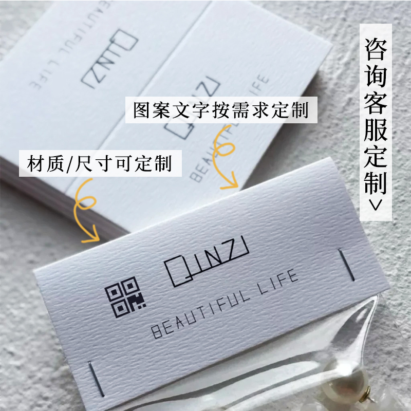 包装卡头定制logo珠宝首饰品美甲对折页眉硬卡纸设计宣传二维码pp捏捏卡片长条装饰店名自封袋封口小卡背打印