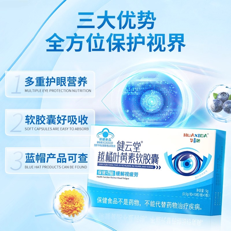 华喜达健云堂越橘叶黄素软胶囊官方旗舰店正品儿童解缓眼干眼疲劳