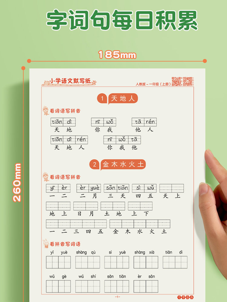没时间给孩子默写,就给孩子准备这个语文生字默写本,每天就练一页