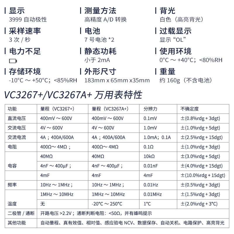 伊万厂家 VC3267A+自动量程真有效值相对值温度验电万用钳形表
