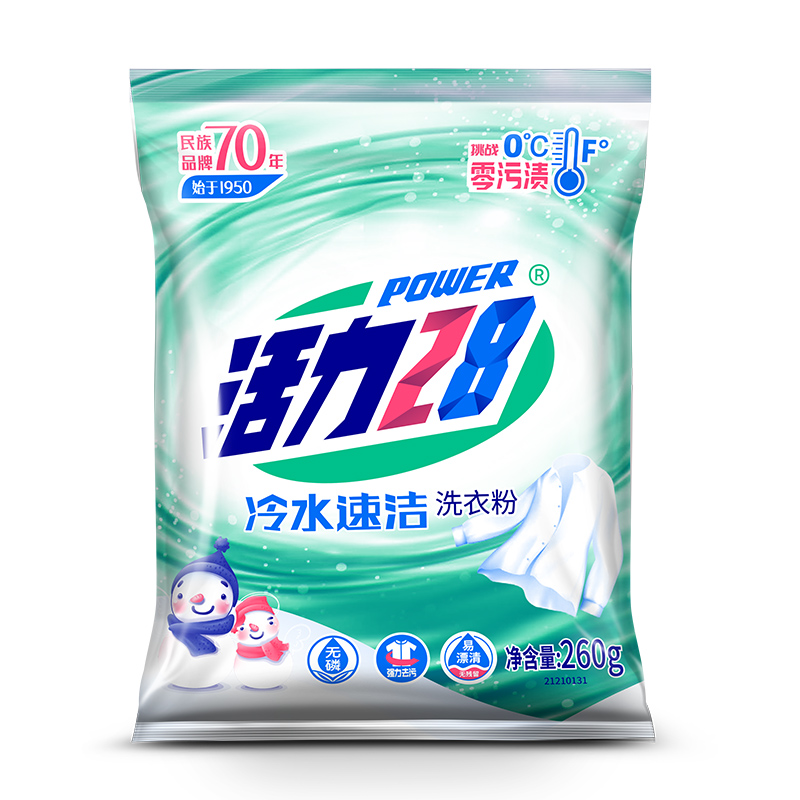 活力28洗衣粉强力冷水速溶260g去污去渍持久留香家用温和不伤手