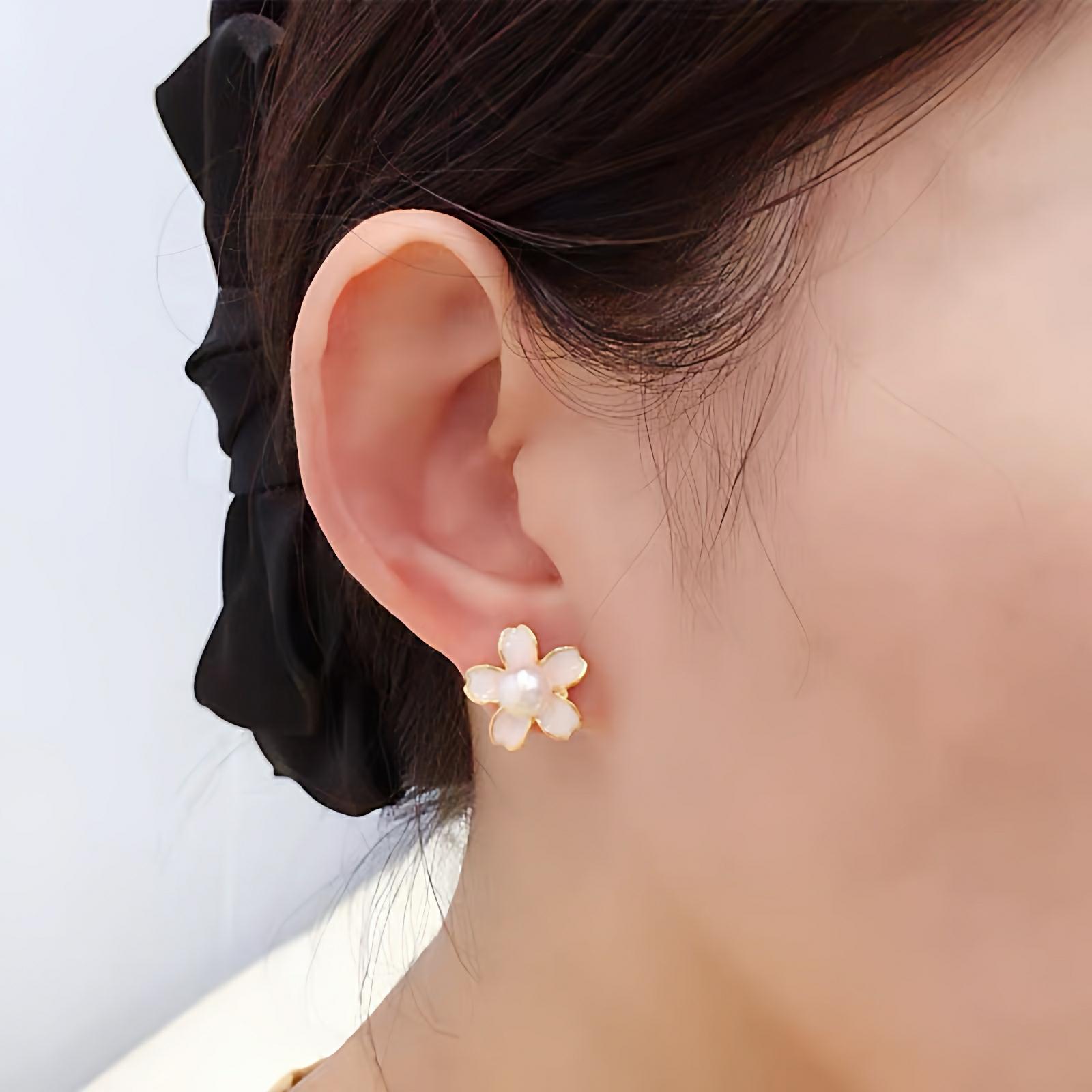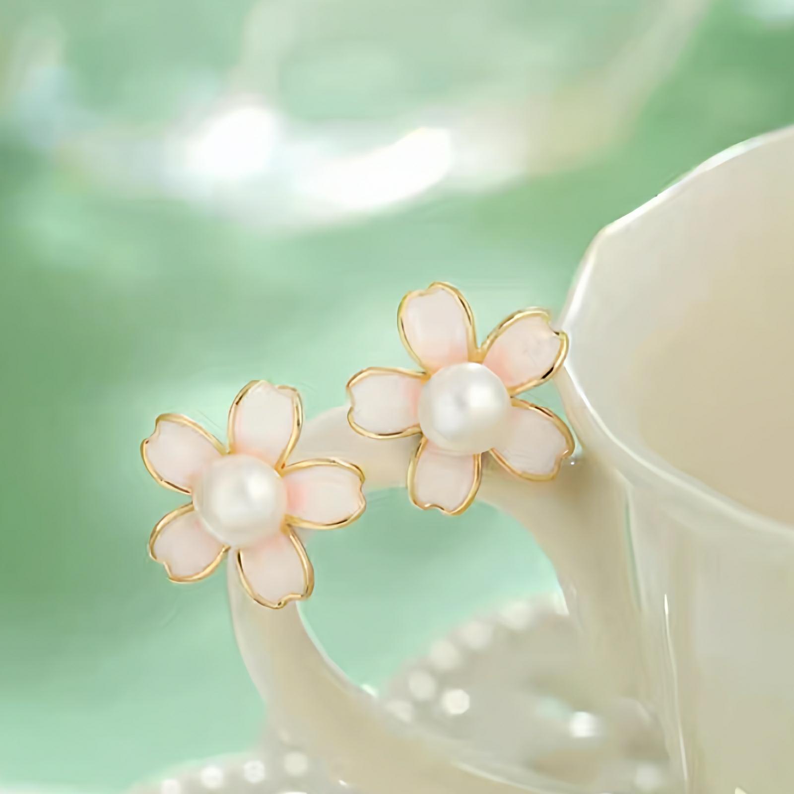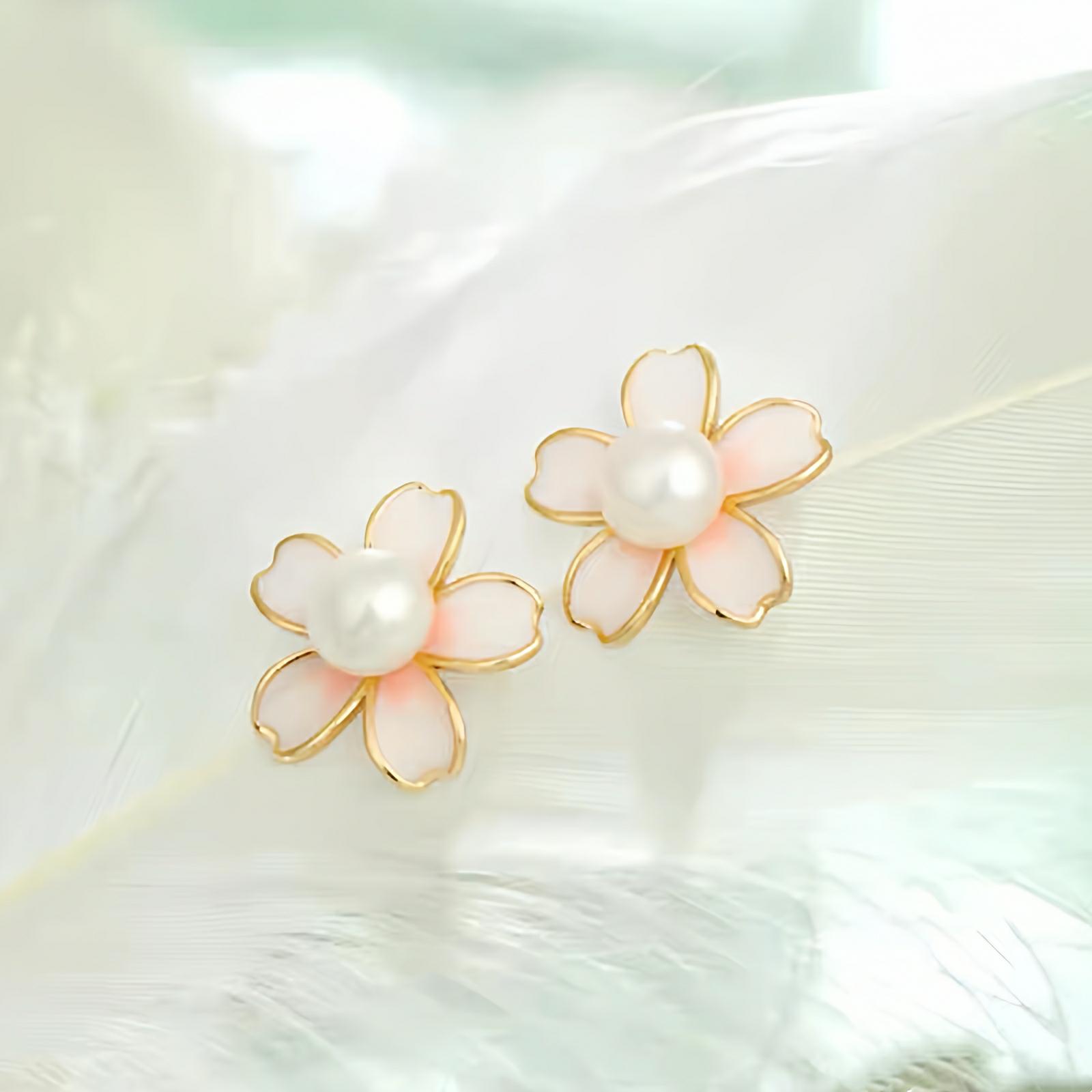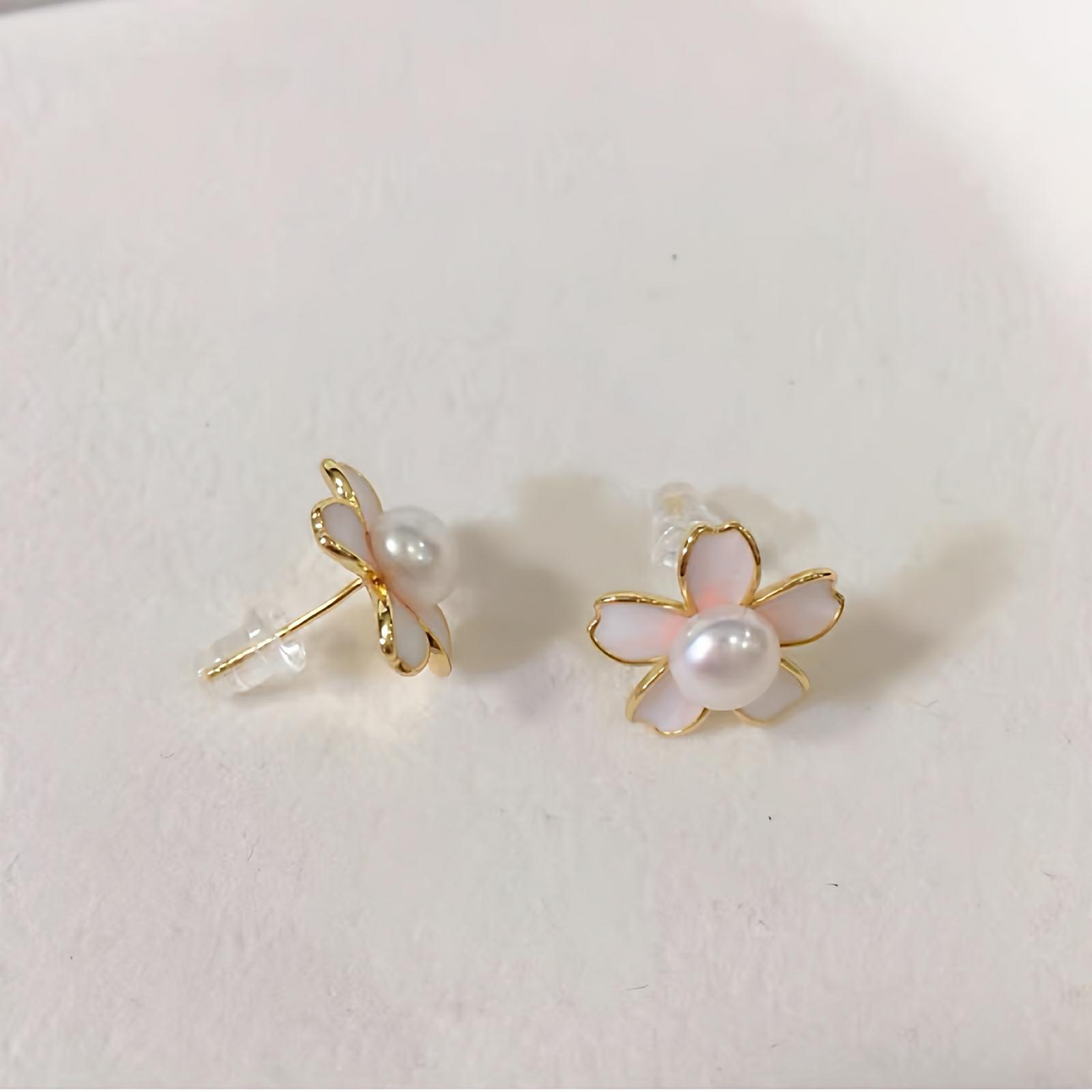 诸暨淡水珍珠耳钉女粉色樱花耳环时尚百搭防过敏耳饰高级节日礼物