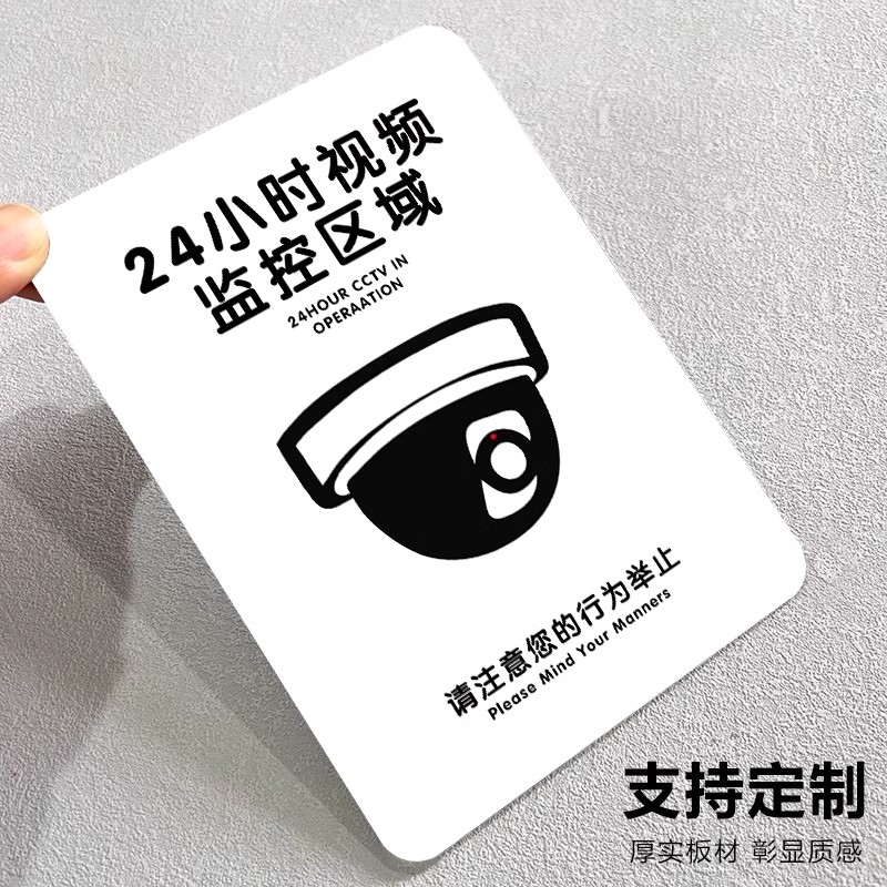 监控警示牌夜光您已进入24小时电子监控区域标识牌内有监控指示牌视频监控警示贴纸提示牌门口有摄像头提醒牌