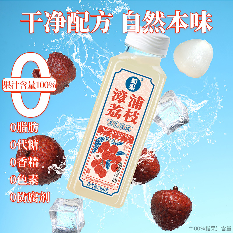 漳浦荔枝水100%复合果汁无添加防腐剂健康国货饮料300g瓶如果香精