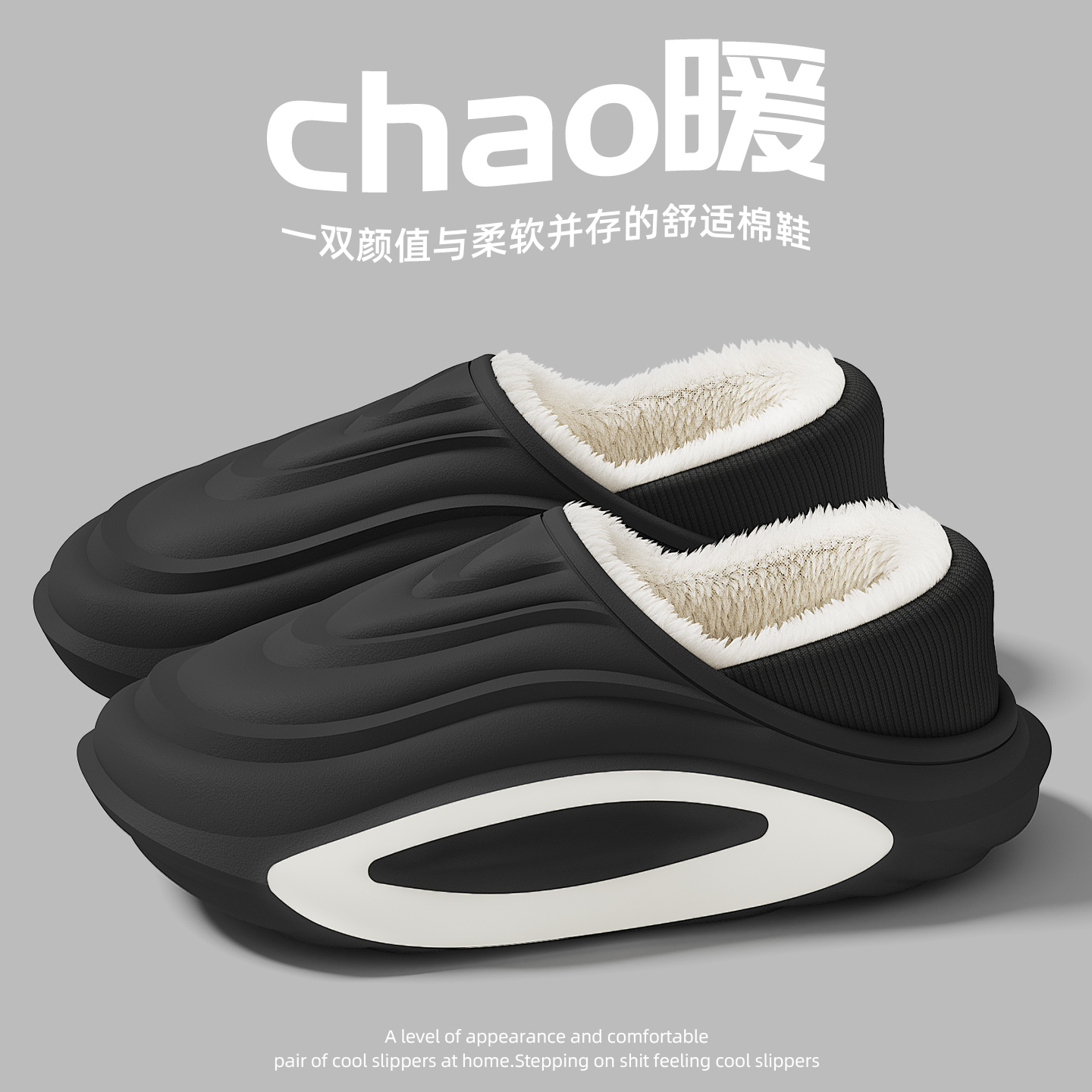 防水棉拖鞋男士冬季包跟外穿2025新款保暖室内居家毛绒加厚棉鞋男