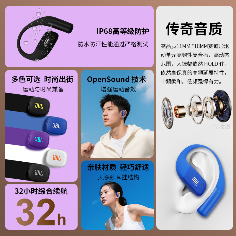 JBL ENDURANCE ZONE悦动圈开放式蓝牙耳机运动跑步健身挂耳式耳机