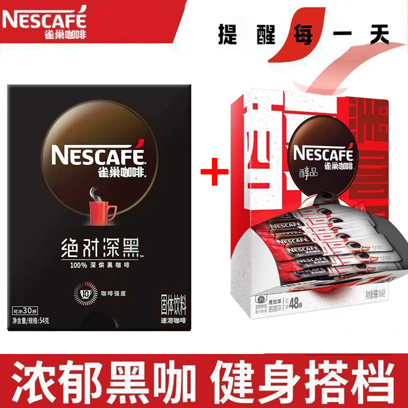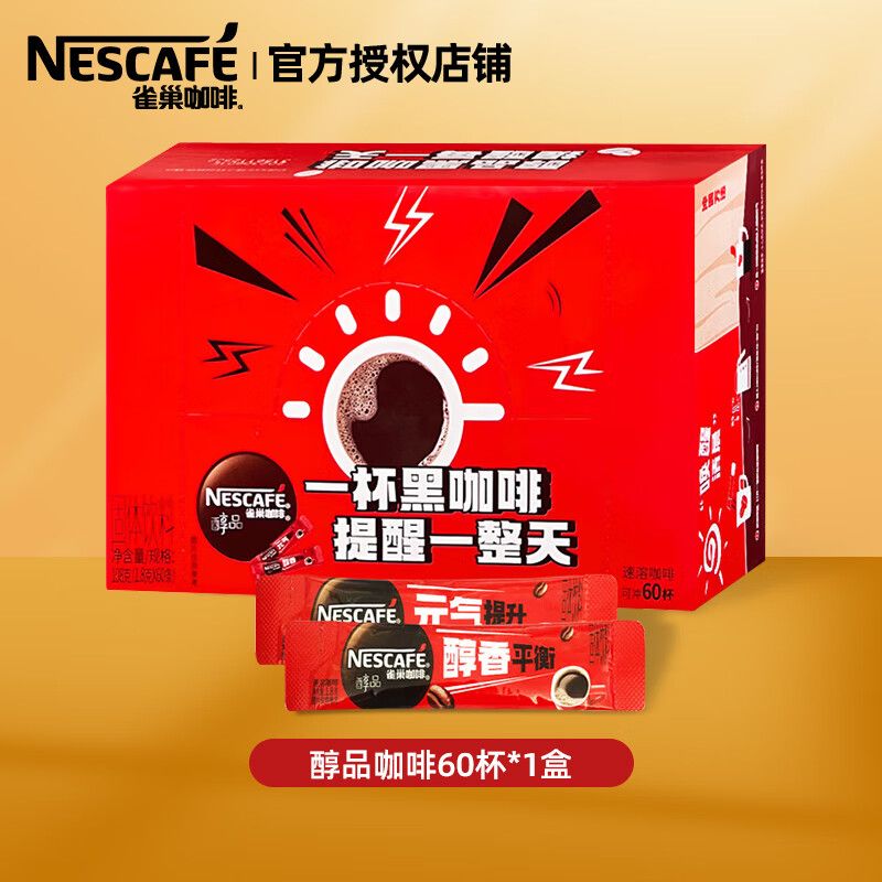 雀巢咖啡醇品美式纯黑咖啡速溶咖啡健身提神深黑咖啡粉官方正品