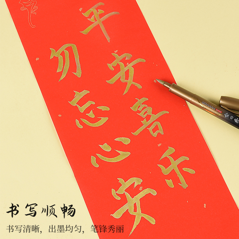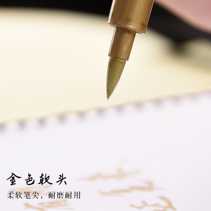 金万年金色秀丽笔大楷软笔软头毛笔书法婚书笔粗写喜帖下聘书订婚金墨笔鎏金笔请帖婚礼喜字金字笔请柬烫金笔
